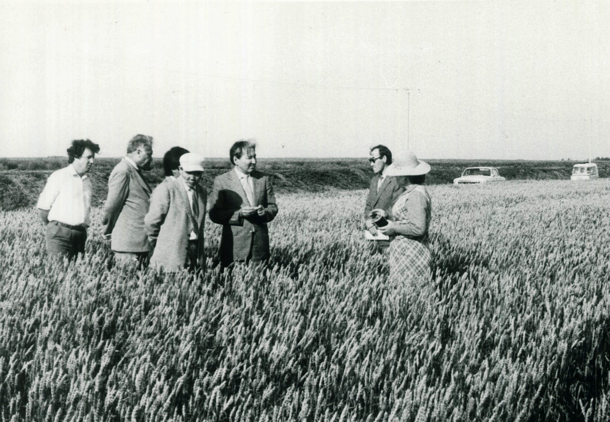Целиноград ауыл-шаруашылық институтының ректоры проф.К.Сағадиев институтың оқу-тәжірибелік шаруашылығында, 1986 ж