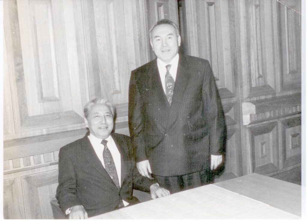 ҚР Президенті Н.Ә.Назарбаев жаңадан сайланған ҚР ҰҒА Президенті К.Ә.Сағадиевтың жұмыс кабинетінде,1994ж