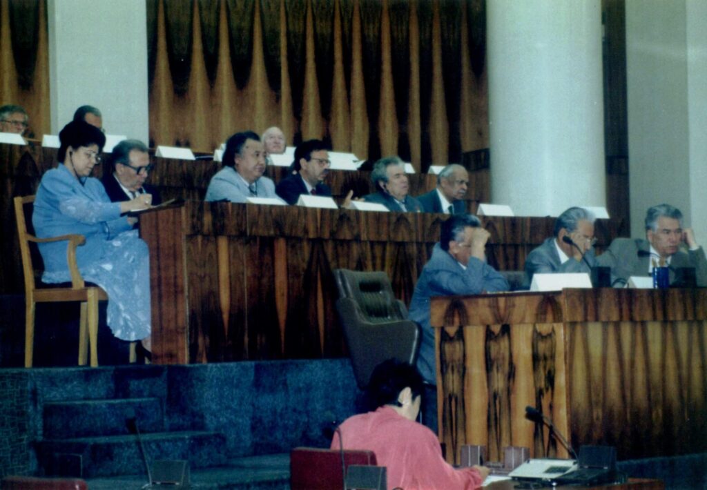 К.Ә.Сағадиев Абай Құнанбайевтың 150 жылдығына арналған ЮНЕСКО-ның ғылыми конференциясында, 1995 ж.